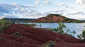 Ce joyau naturel de l'Hérault aux palettes de couleurs contrastées formées par le rouge de sa terre, le bleu de l'eau du lac et le vert de la flore nous donne l'impression de chevaucher dans un paysage digne de Mars ou plus près de nous, cavaliers randonneurs de galoper sur les pistes de Monument Valley.